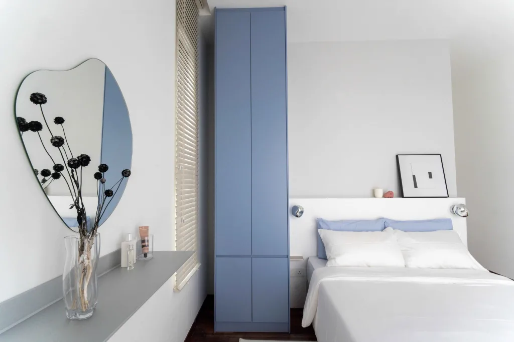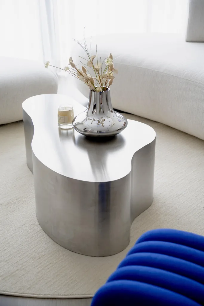 This home was designed for a dynamic couple seeking something fresh, bold, and entirely different from their current living space. A celebration of their creativity and individuality, the design seamlessly integrates their love for blue, sleek stainless steel accents, and stylish furniture.