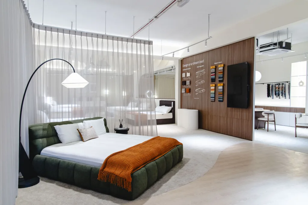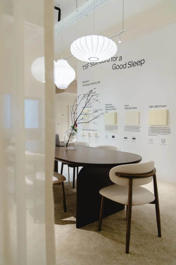 We embarked on redefining @thesleepfactory.co showroom’s interior style to elevate the overall sensory experience and aesthetic appeal, focusing on the 5 senses: touch, sight, smell, sound, and feel. During this collaborative session with @duduuuk_ , we delved into the client’s specific needs and explored tailored solutions to align with the showroom’s objectives.